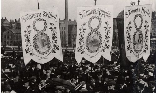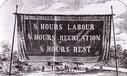 Mauricio Dommanget en su «Historia del Primero de Mayo», al referirse a los trabajadores de Chicago, afirma: «Muchos trabajaban aún 14 o 16 horas diarias, partían al trabajo a las 4 de la mañana y regresaba a las 7 u 8 de la noche, o incluso más tarde, de manera que jamás veían a sus mujeres y sus hijos a la luz del día. Unos se acostaban en corredores y desvanes, otros en chozas donde se hacinaban tres y cuatro familias. Muchos no tenían alojamiento, se les veía juntar restos de legumbres en los recipientes de desperdicios, o comprar al carnicero algunos céntimos de recortes».